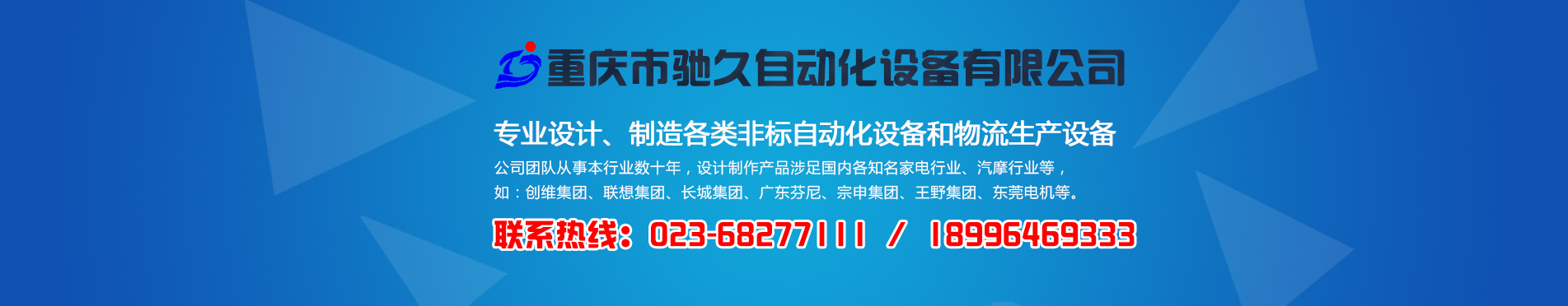 更多>- [06.04]· 熱烈祝賀重慶市馳久自動化設備有限公司網站上線!